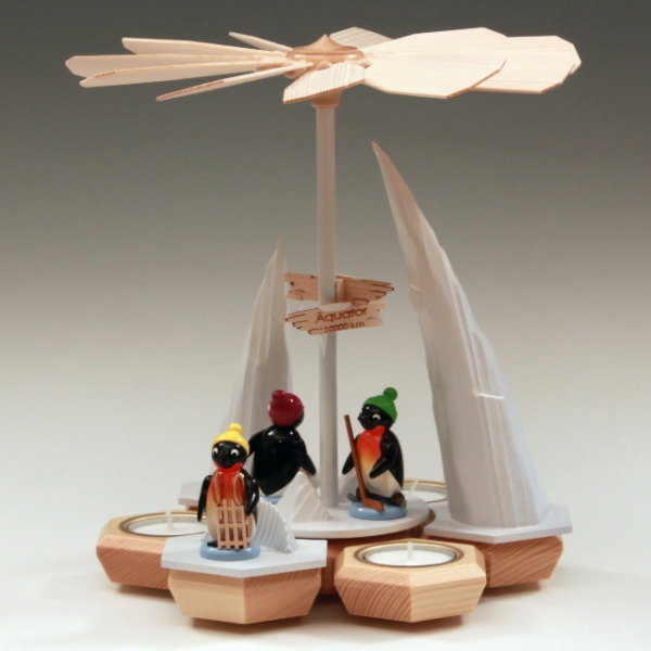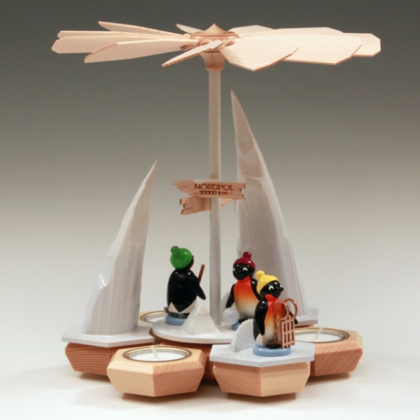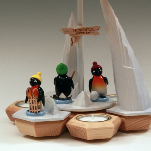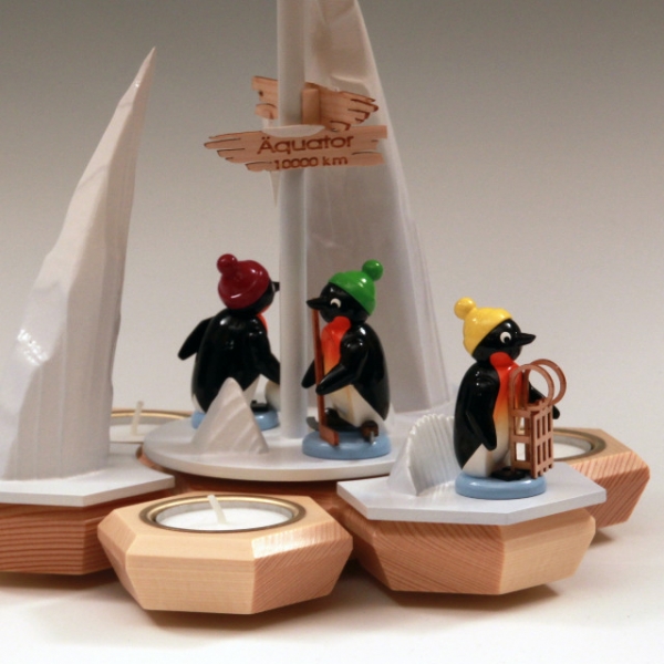 (1 Pinguin mit Schlitten, 1 Pinguin mit Eishockeyschläger, 1 Pinguin mit Schneekugel)